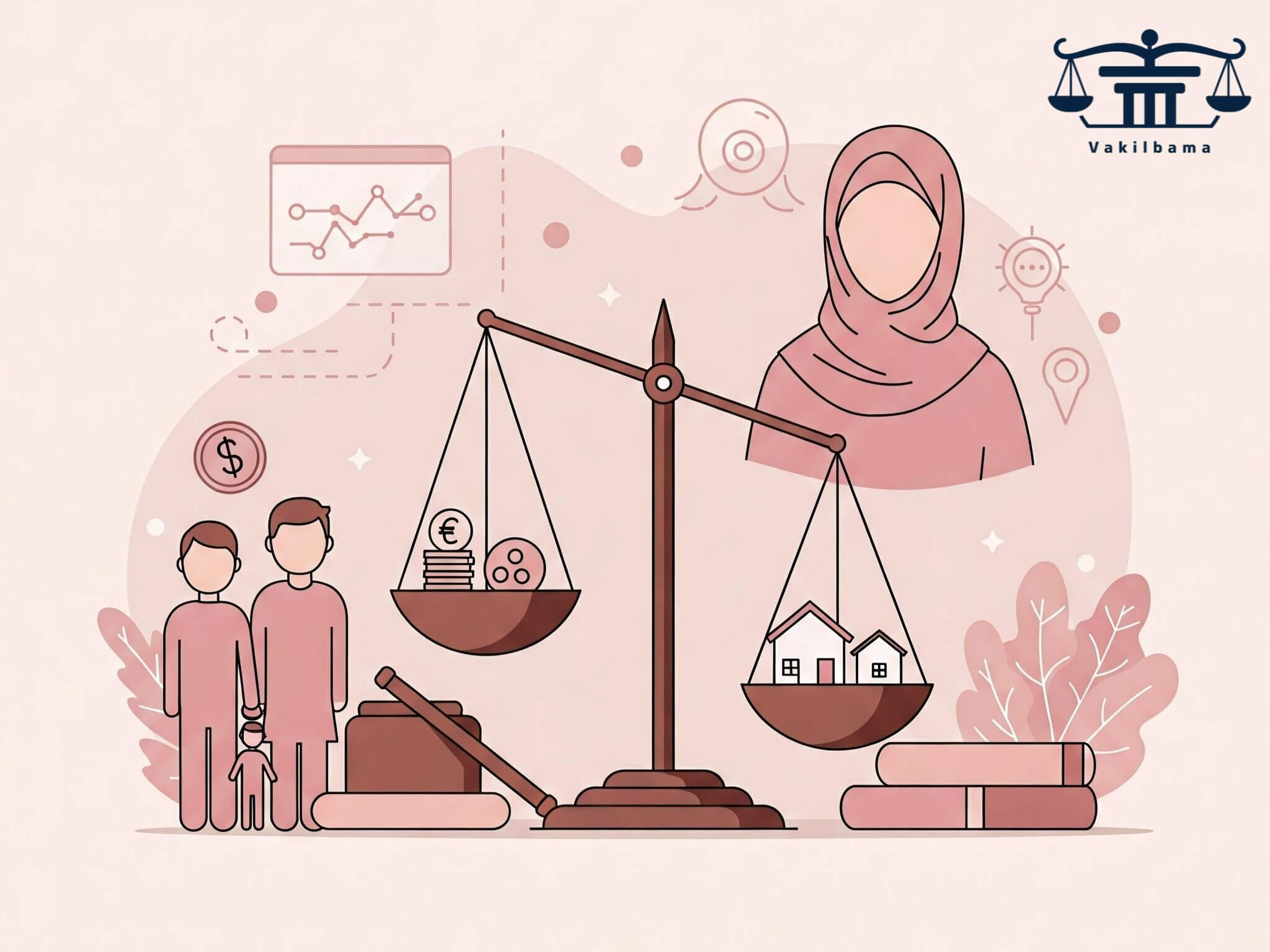 در این تصویر نشان داده شده که دادگاه چگونه نفقه را به شکل عادلانه تعیین میکند.